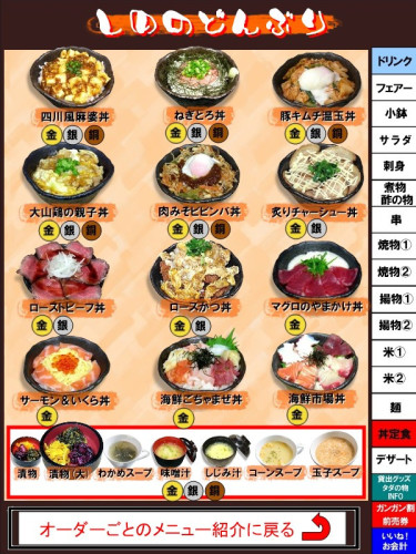 金・銀・銅のマークがメニューの下にあります